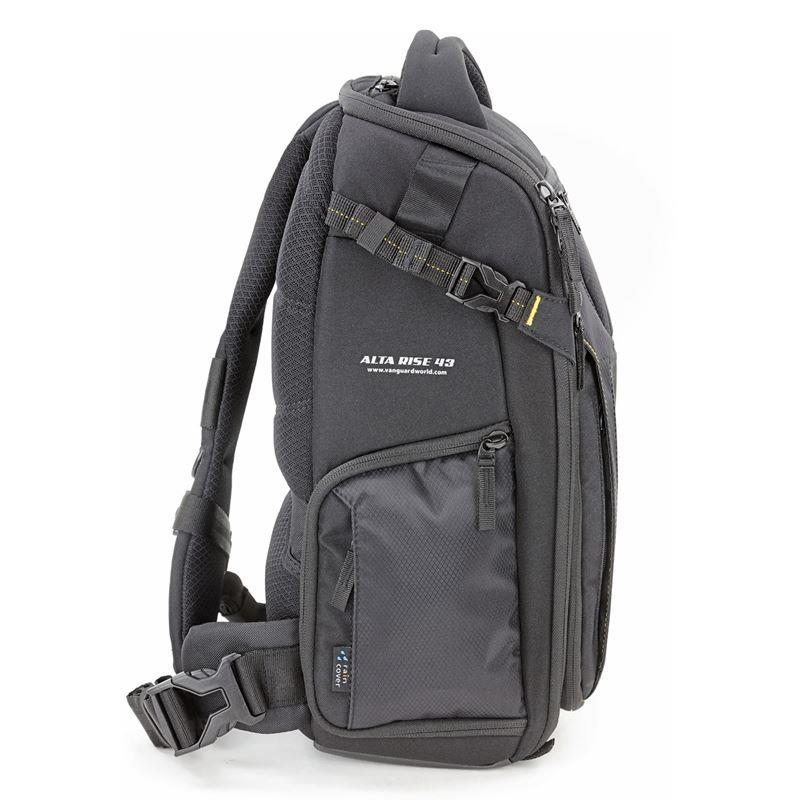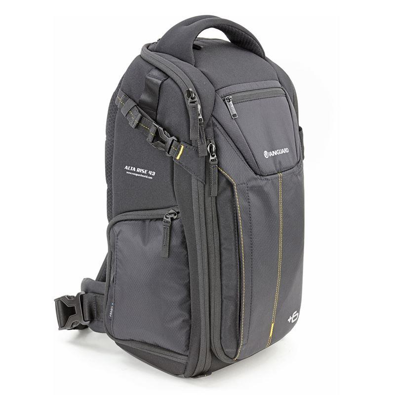 Ba lô Vanguard Alta Rise 43 với kiểu dáng hiện đại, đẹp và tiện dụng. Túi chứa được thân máy DSLR, 4-5 ống kính lên đến 24-70 f / 2.8, đèn flash, các phụ kiện liên quan và một máy tính xách tay hoặc máy tính bảng nhỏ.