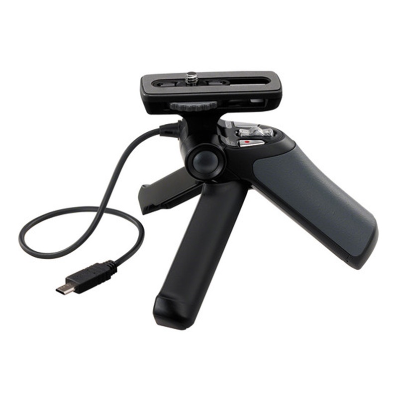 Để tăng tính tiện lợi, hai chân máy có thể mở ra từ báng chụp để biến báng cầm tay Sony GP-VPT1 thành tripod mini, cho phép bạn đặt chân máy lên bàn để sử dụng rảnh tay.