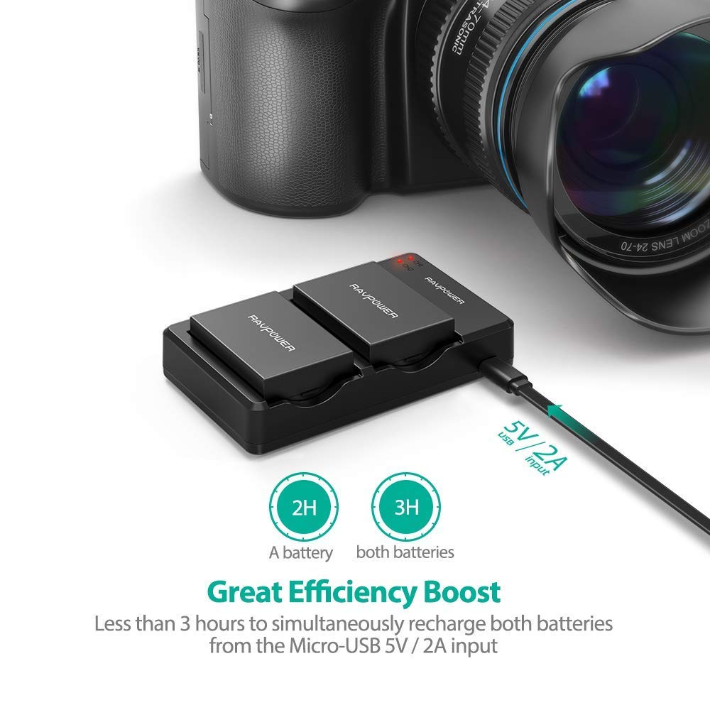 Dung lượng tuyệt vời: Dung lượng mỗi pin 1100mAh có thể được sạc một cách hiệu quả bên trong máy ảnh thông qua bộ sạc 2.1a