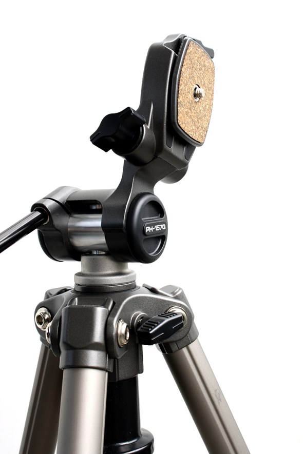 200R đi kèm với một panhead PH-157Q. Máy ảnh, máy quang học thể thao hoặc máy quay tương thích với đế 1/4 “-20 có thể được kết nối với đế tháo lắp nhanh được gắn vào đầu xoay và nghiêng của chân máy bằng khóa nhả nhanh.