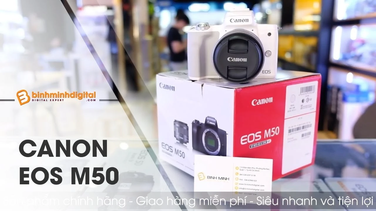 M50 sở hữu thiết kế vô cùng đẹp mắt, kích thước nhỏ gọn, mang theo đi xa du lịch rất tiện dụng. Canon M50 có độ phân giải cao cụ thể 24.1 Megapixel cho chất lượng hiển thị sắc nét, màu sắc sống động. Màn hình của máy ảnh EVF có mật độ điểm ảnh 2.36. Bộ xử lý hình ảnh Digic 8 thế hệ mới được nhà sản xuất tích hợp nâng cao khả năng tạo bức ảnh đẹp. Bạn có thể thoải mái quay video 4K trên màn hình rộng mà không bị giật, hiển thị hình ảnh rõ ràng.