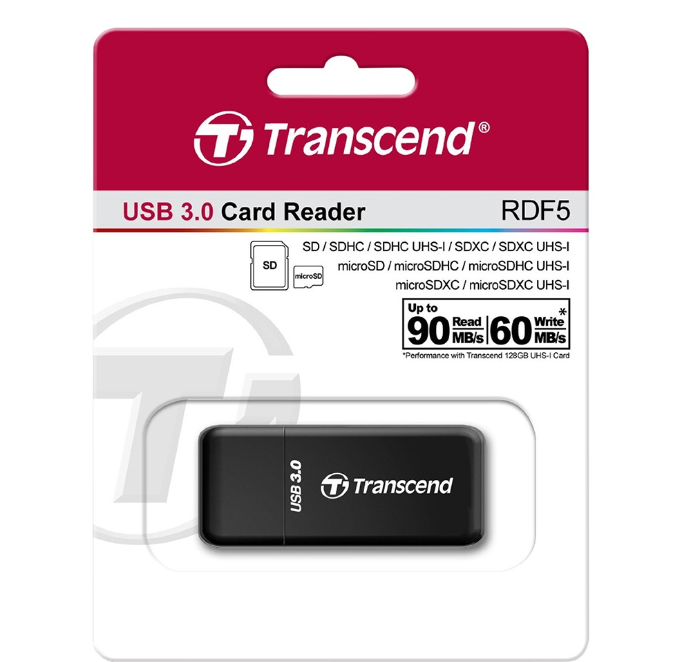 Đầu Đọc Thẻ Nhớ Transcend USB 3.0 (RDF5) hỗ trợ các chuẩn thẻ nhớ SDHC (UHS-I), SDXC (UHS-I), microSD, microSDHC (UHS-I), và microSDXC (UHS-I). Chuẩn giao tiếp 3.0 nhanh và hiệu quả giúp truyền tải và sao chép nội dung trên thẻ nhớ được nhanh chóng.