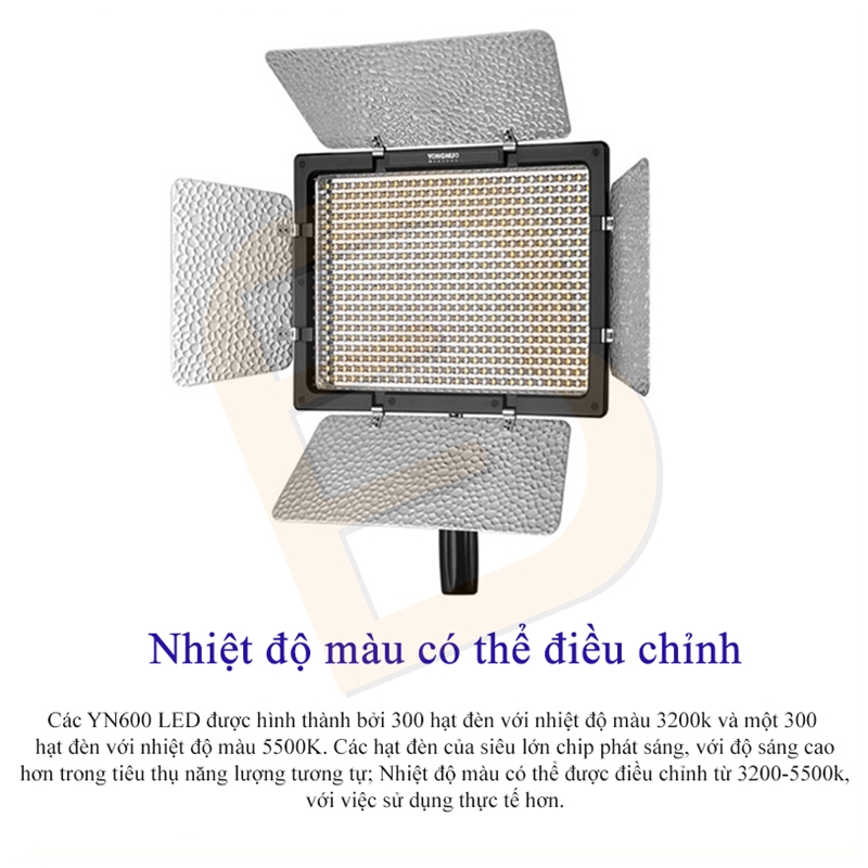 – Đèn Led Yongnuo YN600L II Pro với 600 bóng LED siêu sáng. Công suất cao lên đến 36w với nhiệt màu 3200K-5500K.