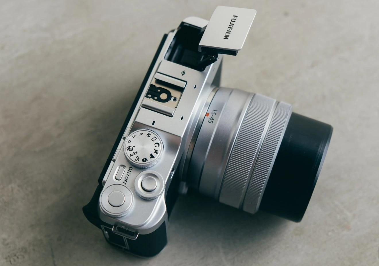 Mặt bên trên, X-A7 có một nút bật/tắt riêng biệt. Cần gạt bật/tắt bao quanh nút shutter trên X-A5 đã được thay thế bằng một bánh xe tinh chỉnh hỗ trợ hiệu quả trong việc điều chỉnh thông số ánh sáng. Bánh xe đặt sau cũng có một nút tùy chọn cho người dùng thoải mái tùy biến.