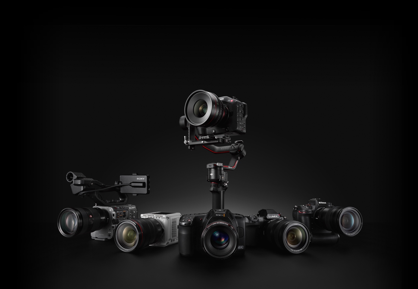 DJI Ronin RS3 Pro sử dụng các cánh tay trục sợi carbon mở rộng để cho phép nhiều không gian cân bằng hơn cho các máy ảnh chuyên nghiệp, khiến nó trở nên phù hợp hoàn hảo với các máy ảnh như Sony FX6 hoặc Canon C70 với ống kính 24-70mm F2.8.
