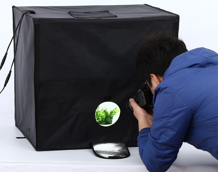 Nguồn sáng: hộp chụp bao gồm 2 đèn LED siêu sáng (5500K) với công suất 50W, sử dụng điện dân dụng 220V rất tiện lợi.