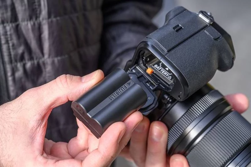 Fujifilm GFX 100S được thiết kế tối giản thì sẽ đồng nghĩa với việc pin cũng sẽ nhỏ hơn, nhưng điều bất ngờ ở chiếc máy này là thời lượng pin của nó vẫn khá ấn tượng, có thể chụp lên đến 460 tấm cho mỗi lần sạc đầy. Bạn cũng dễ dàng kéo dài hoạt động của máy bằng cách mang theo một viên pin dự phòng để cung cấp năng lượng cho máy có thể hoạt động mượt mà, lưu giữ nhiều khoảnh khắc hơn.
