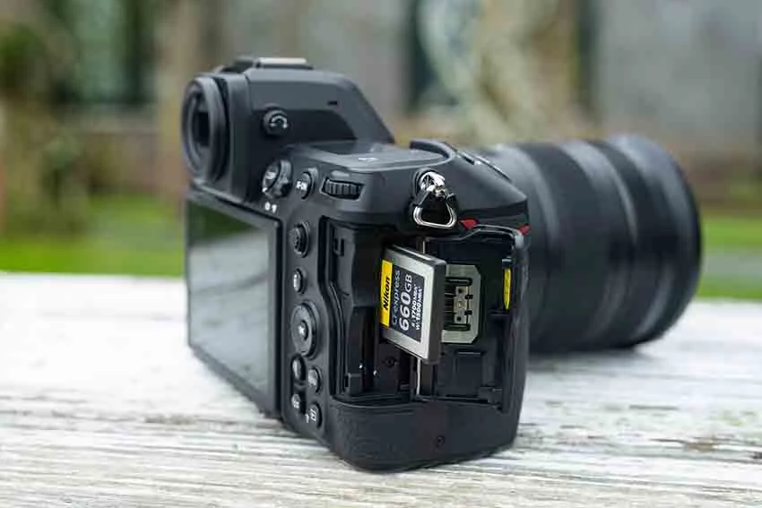 Ngoài ra còn có cổng HDMI kích thước đầy đủ để xuất video ra đầu ghi hoặc màn hình bên ngoài. Jack cắm tai nghe và micro 3.5 để gắn thêm microphone, hỗ trợ việc theo dõi và kiểm soát âm thanh. Cùng với đó là khe cắm thẻ nhớ kép sử dụng cho thẻ CF Express Type B/XQD có tốc độ đọc cao và thẻ SD.
