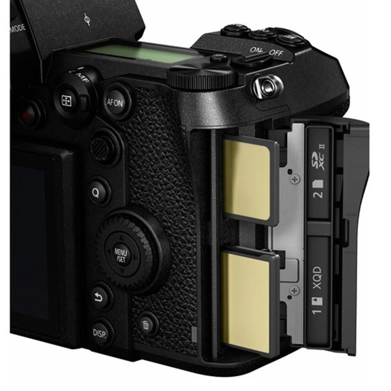 Chiếc máy ảnh có hệ thống lấy nét tương phản 225 điểm, khả năng chụp 9 khung hình 1 giây, tracking sử dụng trí tuệ nhân tạo, chống rung cảm biến 5 trục, bộ xử lý ảnh Panasonic Venus, khe thẻ đôi SD/XQD, tuổi thọ 400,000 hình, chụp ảnh 18MP 30fps, 8MP 60fps.