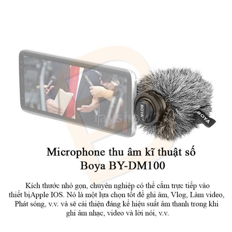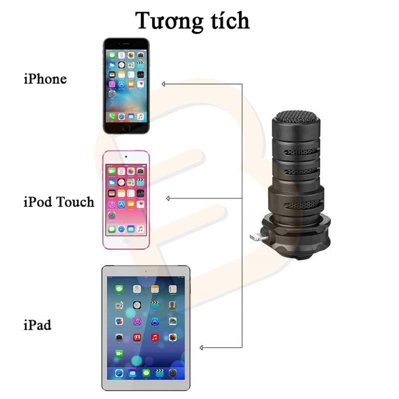 Microphone Boya BY-DM200 được thiết kế để tương thích tuyệt đối với các thiết bị của Apple qua cổng lightning, có thể ghi âm độ phân giải cao tới 24bit/96kHz, cho bản thu sạch và rõ.