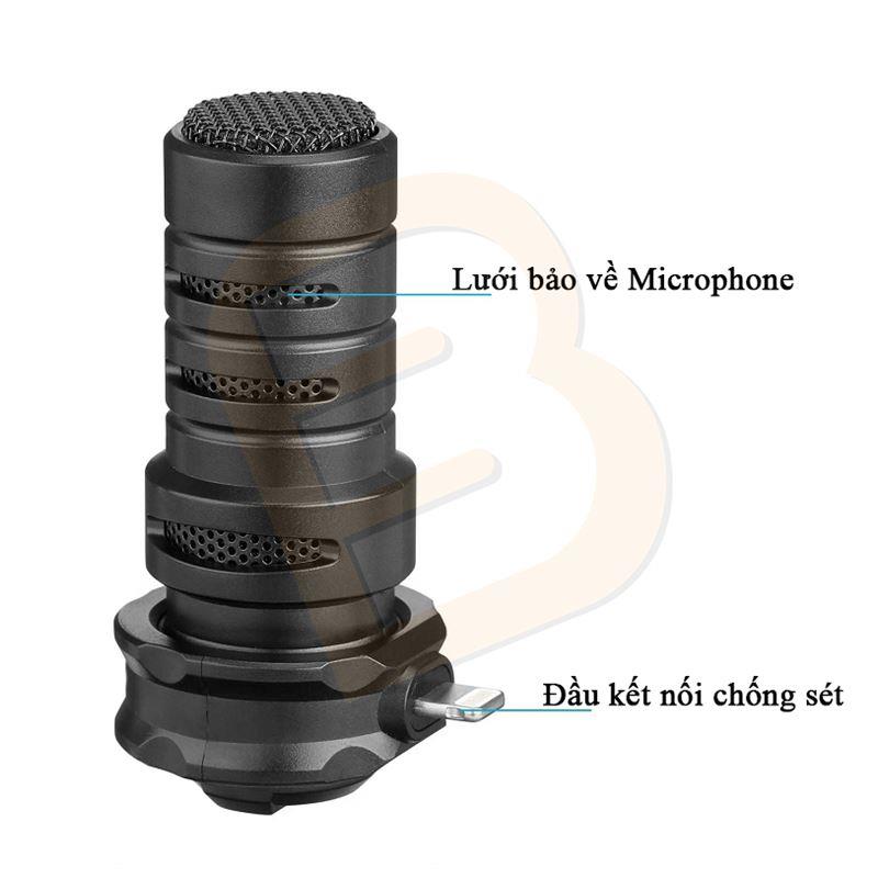 – Chiếc microphone Boya này sử dụng nguồn điện của cổng Lightning, không cần pin, sử dụng mọi nơi mọi lúc mà không lo hết pin.