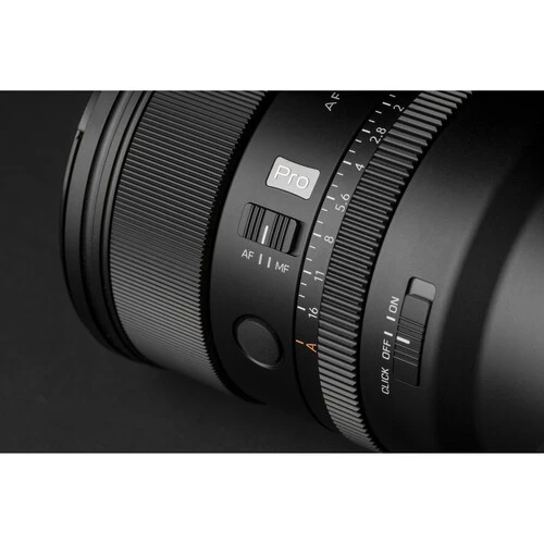 Ngoài ra, người dùng có thể dễ dàng chuyển đổi giữa chế độ lấy nét tự động (AF) và thủ công (MF) thông qua công tắc vật lý tích hợp trên thân ống kính. Điều này giúp tăng tính linh hoạt, hỗ trợ nhanh chóng khi cần điều chỉnh nét bằng tay trong các bối cảnh sáng tạo đặc thù.