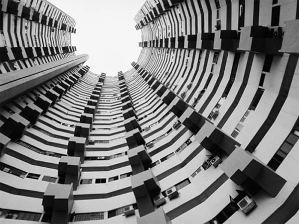 Hãy tìm mẫu với các đối tượng lặp đi lặp lại trong khung cảnh và đưa nó vào khung hình. Nếu ít, bạn có thể zoom lại gần để nó chiếm phần lớn khung hình và loại bỏ được các đối tượng gây mất tập trung. Như bức hình trên, người chụp đã zoom lại gần bức tường chắn trước khu nhà cao tầng với các lỗ gạch để tạo nên một mẫu nền rất thú vị.