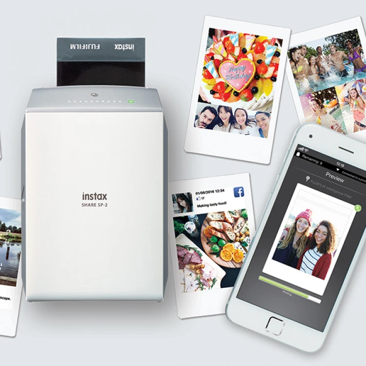 Với Instax SP-2, có thể in từ các thiết bị androi và iOS qua ứng dụng tương thích. Máy hỗ trợ in qua wifi giúp in liền sau khi chụp. Máy in ảnh Fujifilm này còn những chức năng phụ như: in ngày kỉ niệm, chỉnh màu, thêm hiệu ứng,…