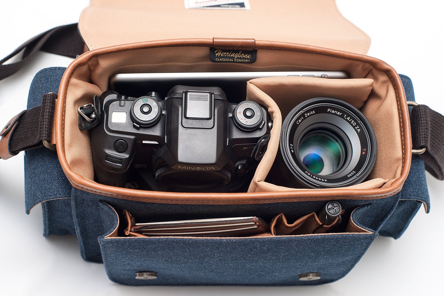 Túi máy ảnh Herringbone Papaspocket Medium Navy sở hữu thiết kế thời trang, đeo chéo mang đến nhiều tiện lợi trong quá trình sử dụng cho nhiếp ảnh gia chuyên nghiệp lẫn nghiệp dư. Sản phẩm là phụ kiện không thể thiếu cho những người đam mê nhiếp ảnh và đang sở hữu cho mình ít nhất một chiếc máy ảnh chuyên nghiệp hoặc mirrorless.