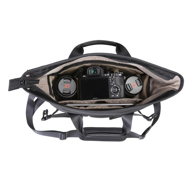 Túi đựng máy ảnh này có thể chứa 01 máy ảnh Mirrorless/CSC/Hybrid kèm ống kính, 2-3 ống kính phụ, đèn flash và phụ kiện đi kèm. Một quai đeo có thể tháo rời, trên cùng có một quai xách để bạn dễ dàng cầm khi không muốn đeo túi.